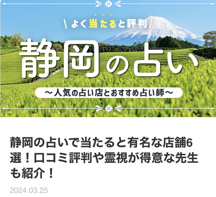 静岡の占いで当たると有名な店舗6選!口コミ評判や霊視が得意な先生も紹介!でご紹介いただきました。