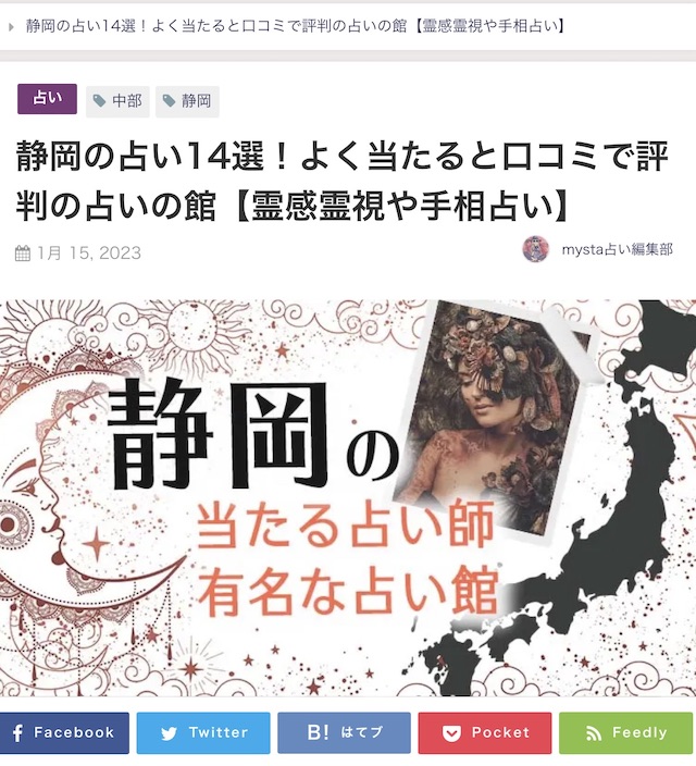 マイスタ占い マイスタ占いさんがご紹介くださいました。静岡の占い14選!よく当たると口コミで評判の占いの館【霊感霊視や手相占い】https://www.mysta.tv/media/shizuoka-fortunetelling/ 共有: クリックして X で共有 (新しいウィンドウで開きます) X Facebook で共有するにはクリックしてください (新しいウィンドウで開きます) Facebook いいね 読み込み中…